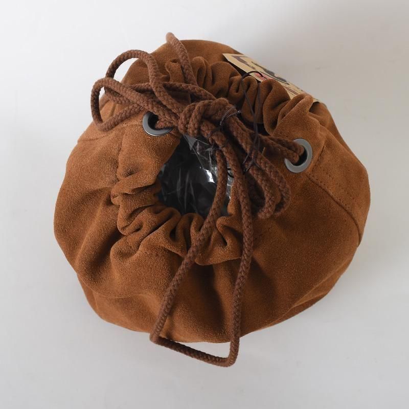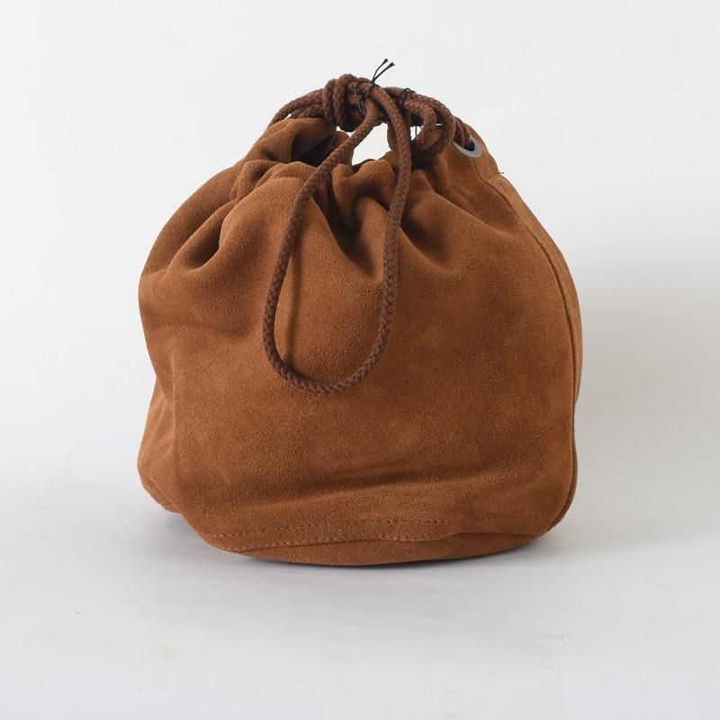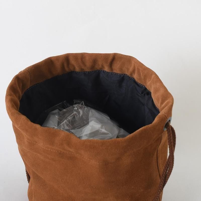 仕切りのない円筒形デザインで巾着バッグとして小物等の持ち運びに活躍します。