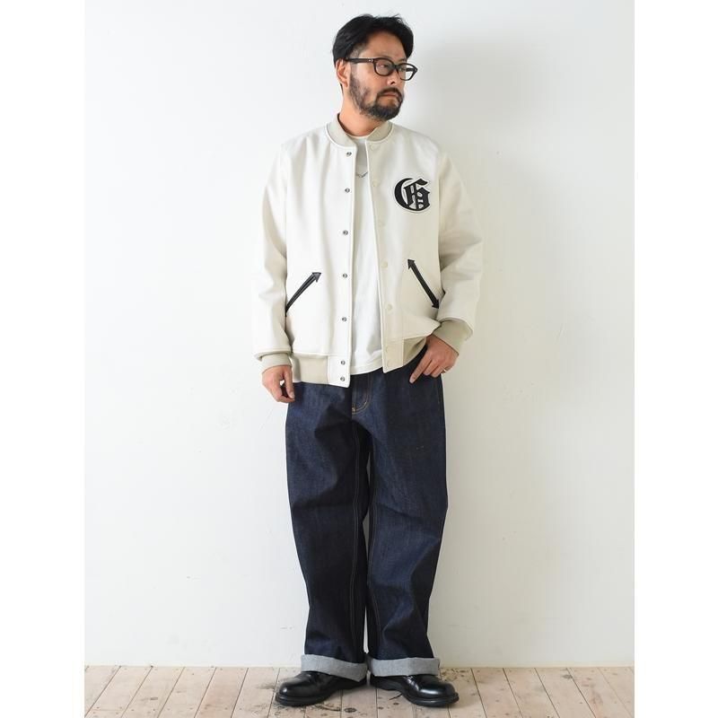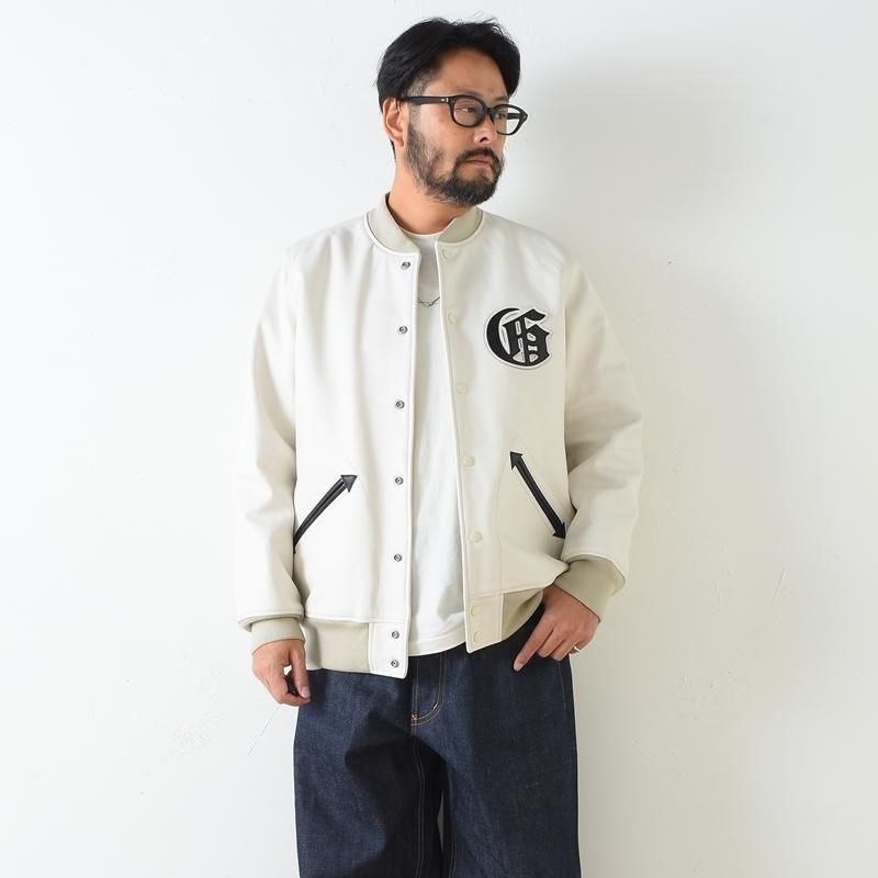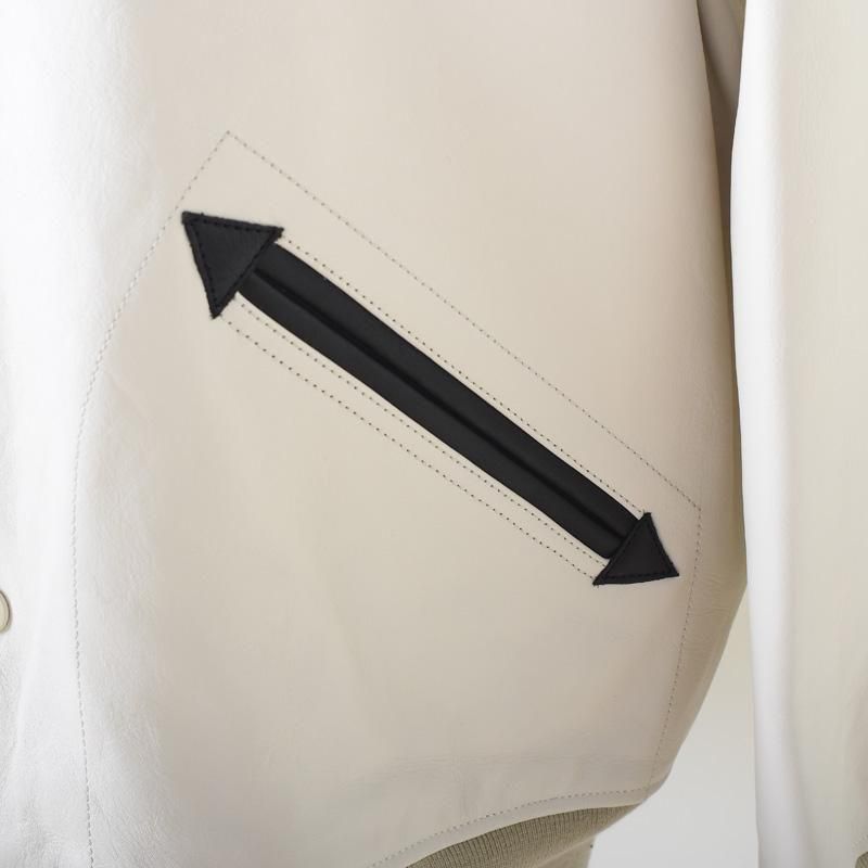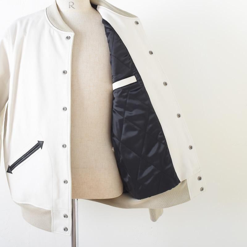 シュリンク加工のシボ感と顔料仕上げならではの発色の良さが特徴のレザーで仕上げたオールレザーのスタジャンです。