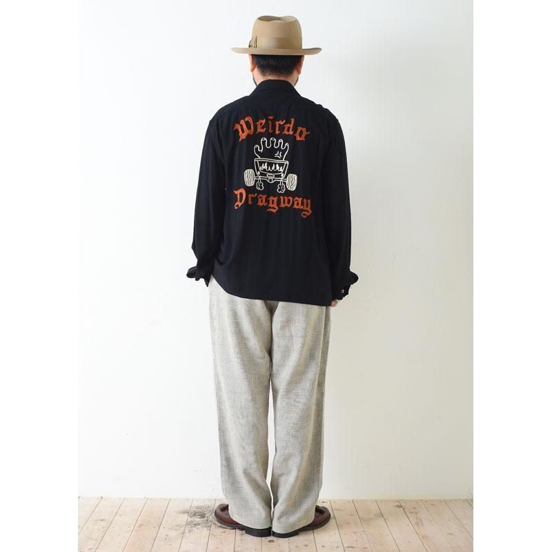 シルケット加工を施し、豊かなドレープの中にわずかなシャリ感を持たせた他にない生地感に仕上がっており、着用時の豊かな肌ざわりと清涼感を感じて頂きたい生地となっている。