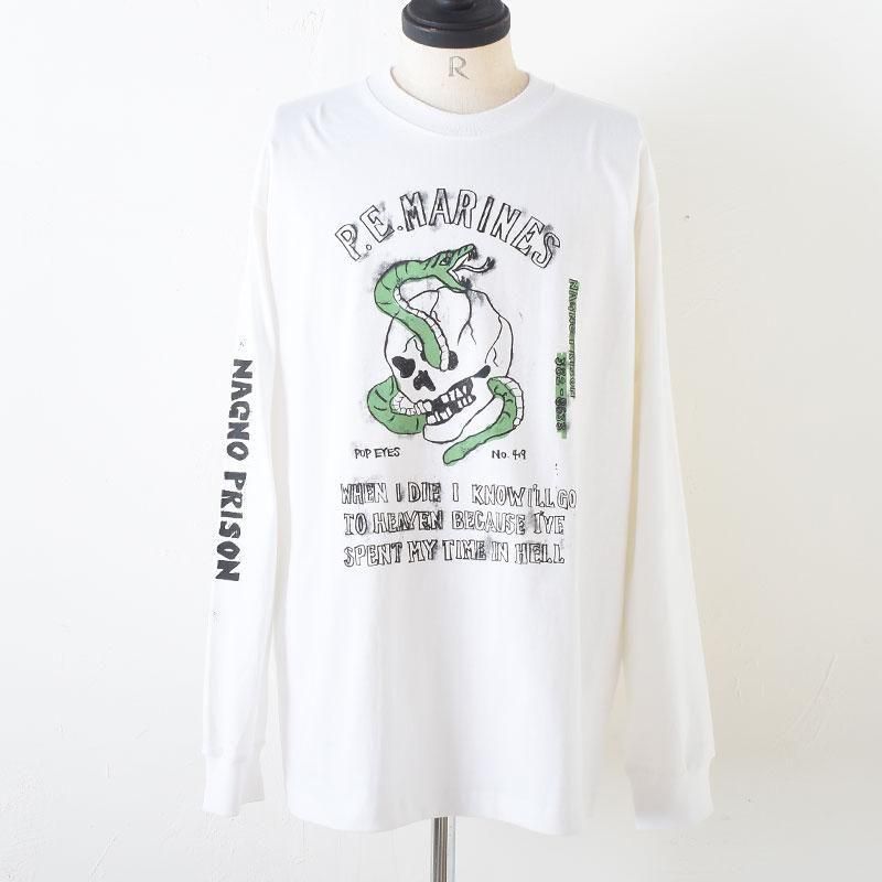 POP EYES ポップアイズ PRISON ART P.E MARINES 07 TEE SHIRT ロングスリーブTEE WHT