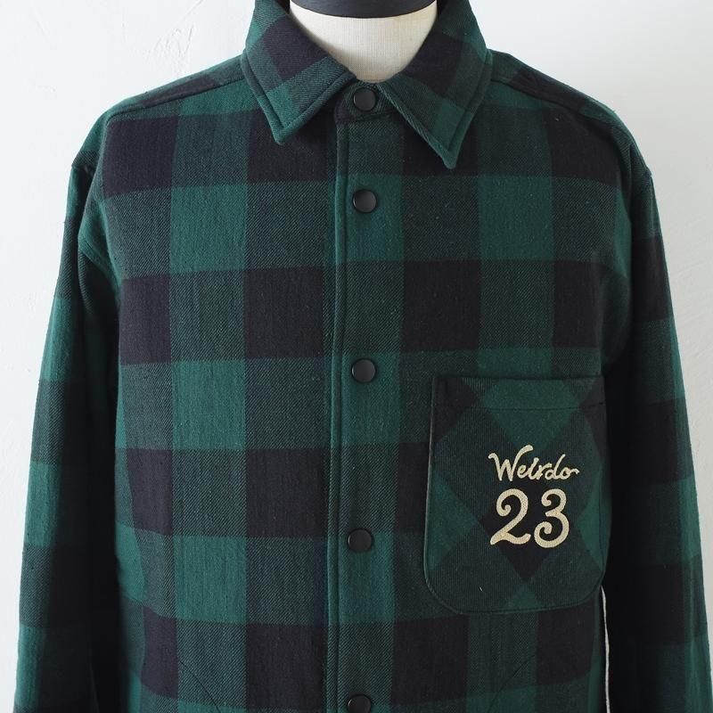 WEIRDO ウィア−ド Weirdo - L/S QUILTING CHECK SHIRTS GREEN キルティング ネル シャツジャケット